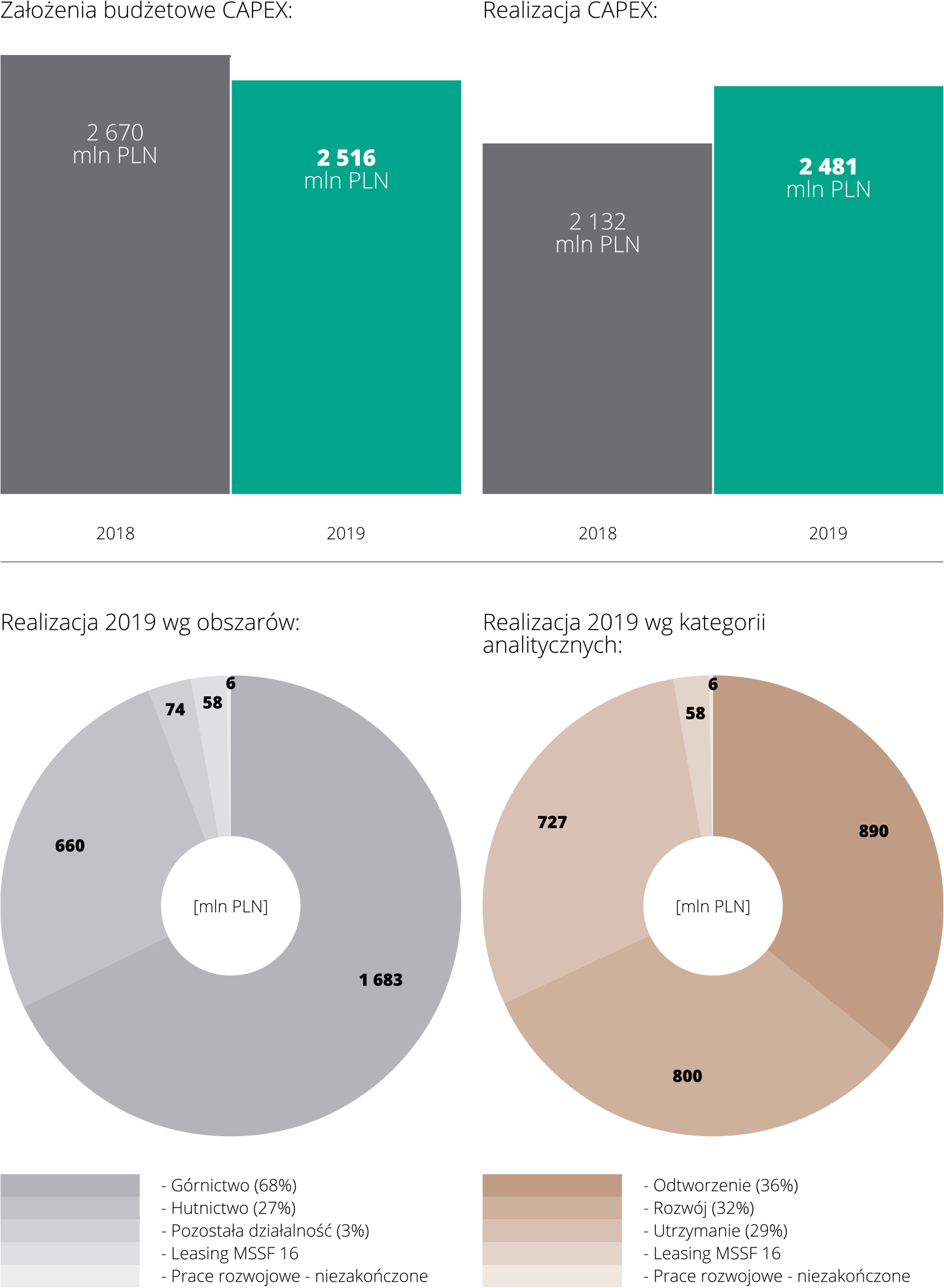 Systematycznie realizowano poszczególne projekty w kategorii utrzymanie oraz rozwój w grupie projektów górniczych (wykonano 48,1 km wyrobisk górniczych), szybowych (GG-1 zgłębiono do 1099,3 m), klimatyzacyjnych i energomechanicznych. W ramach realizowanych prac udostępniających na obszarze „Głogów Głęboki – Przemysłowy”, głębiony jest szyb GG-1, prowadzona rozbudowa centralnej klimatyzacji oraz budowa podstawowych wyrobisk górniczych i ich wyposażenia. Budowa nowego szybu GG-1 prowadzona jest etapami a zakończenie budowy planowane jest w 2022 r. W chwili obecnej będzie to najgłębszy z 31 szybów istniejących w Zagłębiu Miedziowym, o docelowej głębokości 1351 m i średnicy 7,5 m.