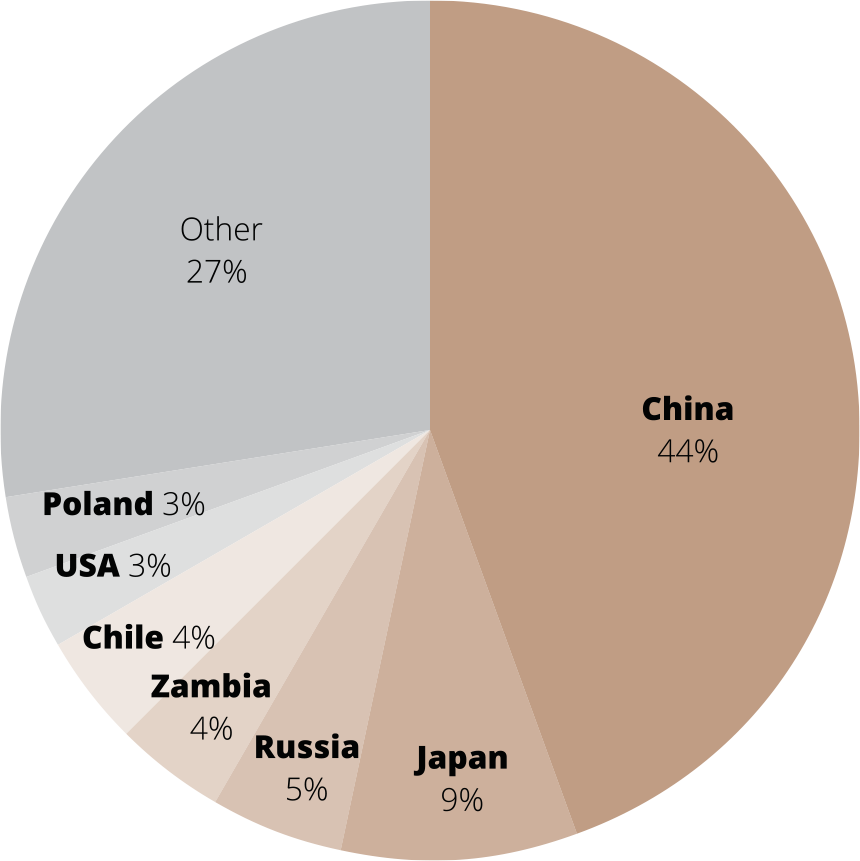 Production in KGHM Polska Miedź S.A. is a fully integrated process, in which the end product of one technological phase is the starting material (half-finished product) used in the next phase. Mining in KGHM Polska Miedź S.A. is performed by three mining Divisions: Lubin, Rudna and Polkowice-Sieroszowice. In the subsequent phase the Concentrators Division prepares concentrate for the smelters and refineries, while the Tailings Division is responsible for storing and managing the tailings generated by the copper ore enrichment process. The organisational structure of KGHM Polska Miedź S.A. includes two metallurgical facilities: the Legnica Copper Smelter and Refinery and the Głogów Copper Smelter and Refinery, as well as the Cedynia copper wire rod plant. A fact worth noting is that recently, as part of its business, KGHM Polska Miedź S.A. has been rapidly developing and implementing certain elements of the circular economy concept. To this end, it has been making progress in the areas of recycling and further improving the utilisation of post-production waste as the so-called secondary sources of raw materials.