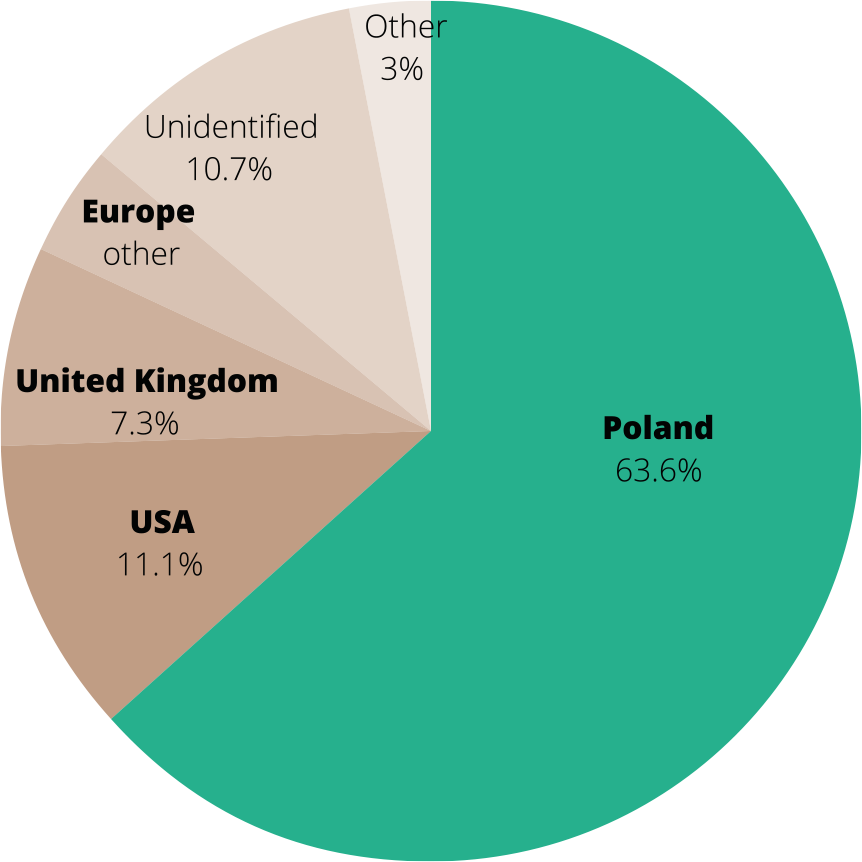 Following is the geographic distribution of the shareholder structure of KGHM Polska Miedź S.A. The data is based on research into the Company’s shareholder structure performed in November 2019.