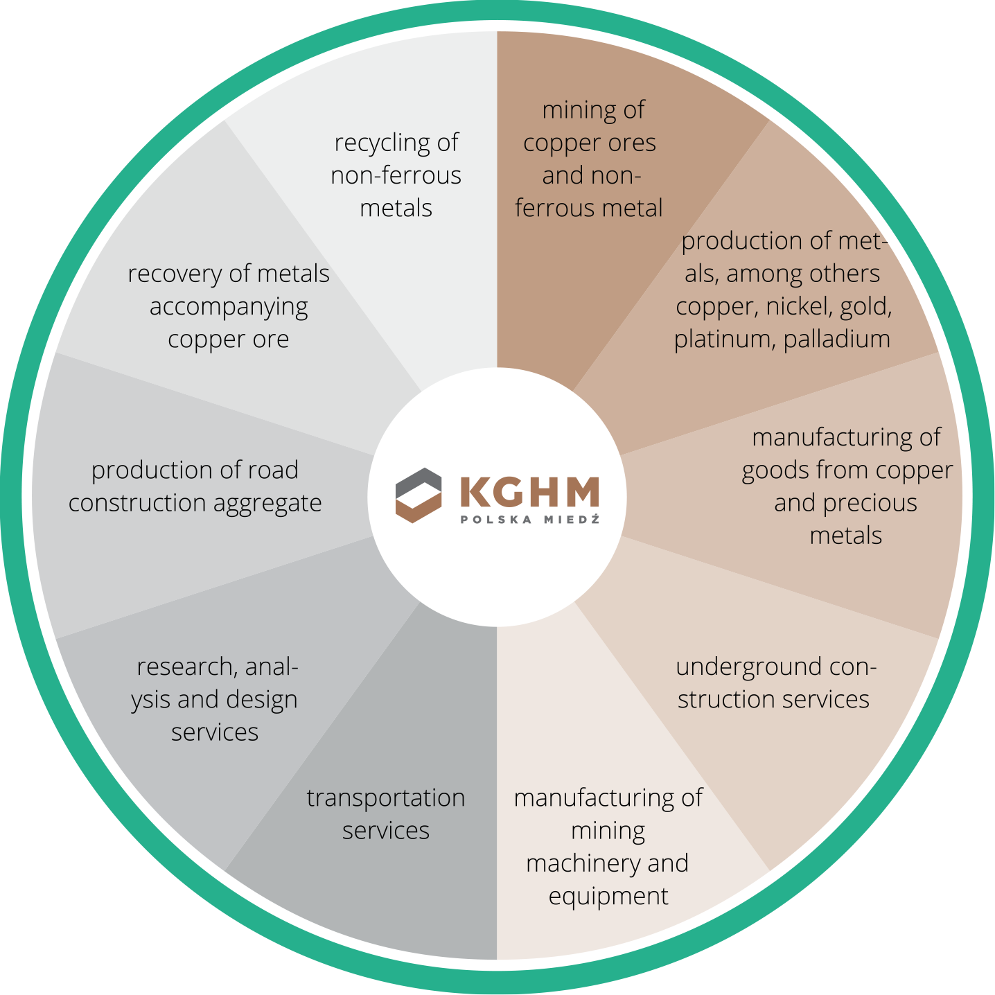Specifically, the business of the KGHM Polska Miedź S.A. Group covers the following areas