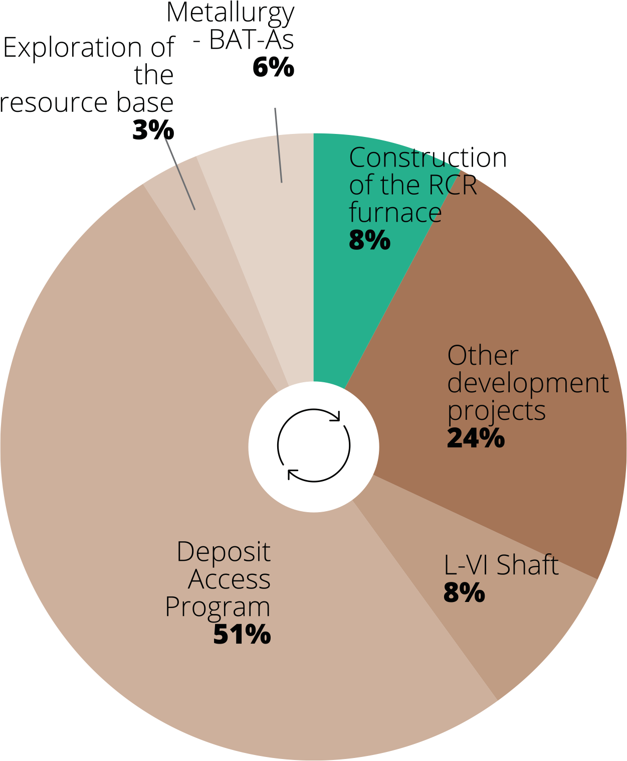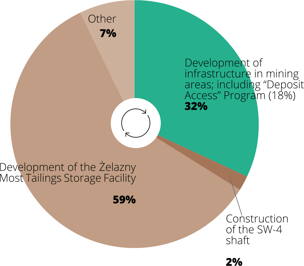 Projects related to maintaining mine production aimed at maintaining mine production on the level set in approved Production Plan (development of infrastructure to match mine advancement) represent 31% of total expenditures incurred.