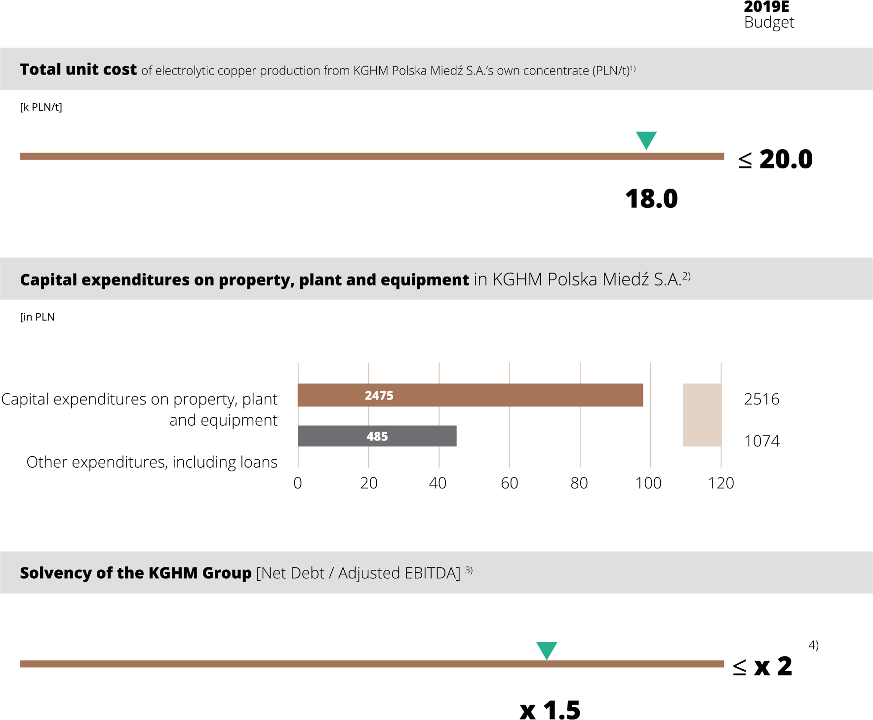 4) The Net Debt/EBITDA ≤ 2 level results from the Financial Liquidity Policy adopted by the Company and does not represent KGHM’s budgetary assumption for 2019.